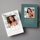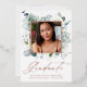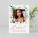 Elegante Blumen Graduierungsankündigungen mit Ihrem quadratischen Foto, gerahmt in Rose Goldfolie mit Aquarell-weißen Blume, Sukkulenten und grünem Blattwerk. "Graduate" wird in einer modernen Rose in Goldfolie-Schrift dargestellt. Personalisieren Sie die Titelseite der Ankündigung des Abschlusses mit dem Namen des Absolventen, dem Namen der Schule und dem Jahr des Abschlusses. Die Folie Abschluss Ankündigung kehrt zu einem zusätzlichen Foto zurück, mit Ihrer persönlichen Nachricht unten gezeigt. Die 2-Foto-Abschluss-Ankündigung eignet sich sowohl für Absolventen der Highschool als auch für Absolventen der Uni.