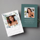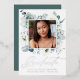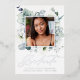 Elegante Blumen Graduierungsankündigungen mit Ihrem quadratischen Foto, gerahmt in Silberfolie mit Aquarell-Blume, Sukkulenten und grünem Blattwerk. "Graduate" wird in einem modernen Silber-Folie-Kalligraphie-Skript angezeigt. Personalisieren Sie die Titelseite der Ankündigung des Abschlusses mit dem Namen des Absolventen, dem Namen der Schule und dem Jahr des Abschlusses. Die Folie Abschluss Ankündigung kehrt zu einem zusätzlichen Foto zurück, mit Ihrer persönlichen Nachricht unten gezeigt. Die 2-Foto-Abschluss-Ankündigung eignet sich sowohl für Absolventen der Highschool als auch für Absolventen der Uni.
