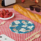 Karo aus diesem Design mit einem weißen Blumenmuster.