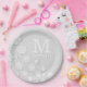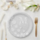 Weiße, blumengeprägte Namensinitialen personalisie Pappteller