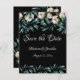 Weiße Blumengrün Schwarz Elegantes Skript Save The Date