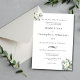 Ein klassischer weißer Blumen mit Grün traditionelle formale Hochzeitseinladung. Einfach und minimalistisch, aber klassisch. Fügen Sie beide Sets der Eltern Namen hinzu. Alle Felder können bearbeitet werden.