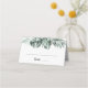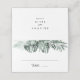 Diese Platzkarte mit tropischer Vegetation und blühender Hochzeit ist perfekt für eine rustikale Hochzeit. Die Einrichtung besteht aus grünen Palmenbouquets mit hübschen weißen Blume. Personalisieren Sie die Rückseite der Platzkarte mit den Namen der Braut und Bräutigam und dem Datum.