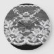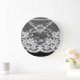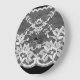 Weiße Blumenspitze: schwarzer Hintergrund. Große Wanduhr