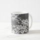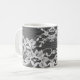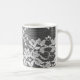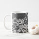 Weiße Blumenspitze: schwarzer Hintergrund. Kaffeetasse