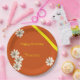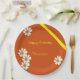 Weiße Blüte mit orangefarbenem Hintergrund Geburts Pappteller