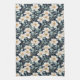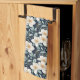 Schöne weiße Blüten mit gelben Mittelpunkten und graugrünes Blattwerk auf dunkelblauem Hintergrund machen dieses Küchentuch zu einem Muss für Ihre Küche.