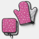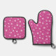 Weiße Blüten in Hot Pink Ofenhandschuh & Topflappen-Set