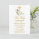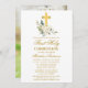 Die elegante Watercolor White Floral First Heilige Kommunion Einladung beinhaltet weiße Rosen & Blume und botanische Vegetation. Gold Cross. Foto zurück.