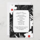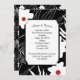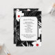 Modernes, weißes Blumendesign mit roten Zentren auf schwarz für Hochzeiten einladen. Text ist bearbeitbar. Kann für Vow Erneuerung Zeremonie einladen.