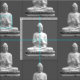 Weiße Buddha-Statue in Wiederholmuster, Hintergrundfarbe anpassbar