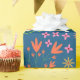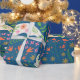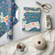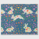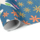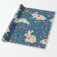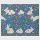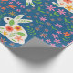 Lassen Sie sich verzaubern von diesem skurrilen Osterverpackungspapier mit weißen Kaninchen, umgeben von spielerisch orangefarbenen, rosa und roten Blume mit grünen Blätter auf einem dunkelblauen Hintergrund. Ideal für Osterkörbe, Frühjahrsfeiern oder sonnige Geschenke,