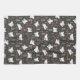 Illustrierte weiße Kaninchen, Tulpen, rote Blume und Blätter auf grauem Hintergrund für Frühjahr und Ostern.