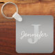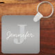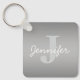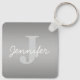 Weiße Cursive und Grau-Monogramm | Editierbare Far Schlüsselanhänger
