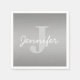 Weiße Cursive und Grau-Monogramm | Editierbare Far Serviette