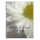 Personalisieren Sie das hübsche Soft White Daisy Wedding Spiral Notebook mit den persönlichen Namen der Braut und Bräutigam und Ehezeremonie Datum, um ein maßgeschneidertes Gästebuch, Ratgeber, Hochzeitsplaner, Tagebuch oder Journal zu organisieren wichtige Daten und Details bei der Planung Ihrer Nuptials. Dieses klassische, maßgeschneiderte botanische Hochzeitsbuch zeigt eine mehrfache Belichtung, die auf einem Blumenfoto nah ist, von einer blauen Blüte mit weißer, blühender Blume und einem gelben Zentrum auf grauem Hintergrund.