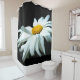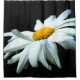 Weiße dunkle Blume vor dunklem Hintergrund. Blume mit weißen Blütenblättern und gelber Scheibe. Die Blume ist unter dem Wind des Sommers geneigt. Malerei aus einer Fotografie. Duschvorhang zur Dekoration Ihres Badezimmers für Spaß und gute Laune