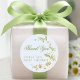 Weiße Gänseblümchen-Blumen-Baby-Shower-Einladung Danke Blau Klassischer runder Aufkleber mit einem zarten Wasserfarben-Design aus Gänseblümchen und sanftem Grün ist eine schöne Art, Ihren Gästen für die Feier Ihres besonderen Tages zu danken. Der elegante Blumenstil ist perfekt für ein Gänseblümchen- oder botanisches Baby-Shower-Thema und verleiht Favoriten, Geschenktüten und Süßigkeitenboxen eine charmante Note.