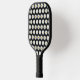 Pickleball-Paddel mit dem Foto-Bild einer hübschen, weißen Daisy-Blume mit gelber Mitte auf schwarzem Hintergrund, gedruckt in einem sich wiederholenden Muster. Ein lustiges Blumendesign! Wählen Sie die Farbe und andere Optionen für den Paddelgriff aus.