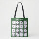 Fügen Sie einen Namen oder eine benutzerdefinierte Nachricht hinzu, um die perfekte personalisierte Tasche für Fans von Dominospielen und anderen Spielen zu erstellen. Diese Tasche ist mit einfachen, handgezeichnet Illustrationen weißer Dominosteine mit schwarzen Punkten und dem Druck auf grünem Hintergrund ausgestattet.