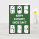 Fügen Sie Ihre eigene, individuelle Nachricht hinzu, um die perfekte personalisierte Grußkarte für jeden Anlass zu erstellen. Diese Karte bietet einfache, handgezeichnet Stilbilder von weißen Dominosteinen mit schwarzen Punkten und dem Druck auf grünem Hintergrund. Die Nachricht vorne und innen kann mit dem eigenen Text personalisiert werden.