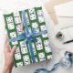 Weiße Dominosteine mit schwarzen Punkten auf grüne Geschenkpapier