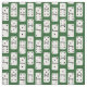 Einfache, handgezeichnet Stilbilder von Dominosteinen in Weiß mit schwarzem Druck oder schwarzen Punkten auf ihnen sind in einem Muster auf einem grünen Hintergrund auf diesem Stoff angeordnet. Es ist perfekt für alle, die Lieben Dominospiele und andere Spiele spielen.