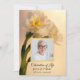 Ehre die Erinnerung an deinen Lieben mit dieser anmutigen White Double Daffodil Blume Frühjahrsfeier des Lebens Einladung. Mit einem digital bemalten Blumenfoto von zarten, weißen Narzissen blüht die Blume mit sanften grünen Stielen vor einem cremigen Hintergrund und verbindet Eleganz und Gelassenheit perfekt. Das zeitlose Design eignet sich insbesondere im März, April oder Mai hervorragend für einen Frühjahrsdenkmaldienst. Diese Einladung ist sowohl als gedruckte Karte zum Verschicken als auch als bequemer digitaler Download erhältlich, sodass es einfach ist, mit Familie und Freunden in der Nähe und fern zu teilen. Ob Sie eine formelle Ansammlung oder eine intime Erinnerung planen, dieses Design fügt Ihrer Veranstaltung eine Touch von Schönheit und Würde hinzu. Personalisieren Sie den Text so, dass er den Namen, die Daten und die Veranstaltungsdetails Ihres Liebsten enthält, und schaffen Sie so einen sinnvollen Überblick für die Teilnehmer. Mit Sorgfalt entworfen, spiegelt diese Einladung die Erneuerung und Hoffnung des Frühlings wider und ehrt gleichzeitig ein gepflegtes Leben.