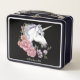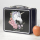 Weiße Einhorn-Blume Rosa Schwarz Metall Brotdose