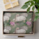 Dieses Vintag inspiriert Design zeigt weiße Eulen auf Ästen mit rosa Rosen auf hellgrünem Hintergrund. Ideal für entcoupte Kunst, Papierhandwerk oder Geschenkverpackung.