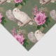 Weiße Eulen und rosa Rosen auf grüner Decoupage Seidenpapier