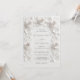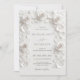 Diese elegante minimalistische zeitgenössische Hochzeitseinladung zeigt einen weißen Rahmen mit dreidimensionalen Rosen.