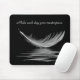 Weiße Feder mit Wasserreflektion und Zitat Mousepad