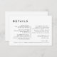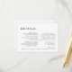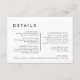 Mit unserem neuen Design der White Modern Bold Wedding Details Enclosure Card präsentieren wir Ihnen moderne Minimalismus und Eleganz. Mit seiner einzigartigen Mischung aus kreativen und schicken Designelementen ist dieses Design perfekt für diejenigen, die eine polierte und kühne Ästhetik an ihrem besonderen Tag suchen. Unsere schicke Off-Set-Typografie fügt Ihrer Hochzeit eine Touch zeitloser Eleganz hinzu, egal ob Sie Ihren großen Tag für den Frühling, Sommer, Herbst oder Winter planen. Die Vielseitigkeit dieses Designs sorgt für eine leichte Personalisierung für jede Jahreszeit. Klassische Schwarz/Weiß bieten eine saubere und helle neutrale Kulisse, die gewährleistet, dass Ihre Hochzeitsästhesie problemlos zu erreichen ist. Wie bei allen unseren Designs, wenn Sie Fragen oder besondere Wünsche haben, frag einfach.