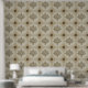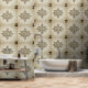 Weiße Fliese mit grüner Transferdekoration Tapete