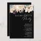 Wir entwarfen diese weiße Blume | Schwarzer Junggeselinnen-Abschied, um Ihr rustikales dunkles tropisches Party zu vervollständigen. Die böhmische Aquarellanlage mit ihren modernen böhmischen Blume, wie Protea, Dahlia und getrockneten Lotus, ist ein Set für das modisch-minimalistische Schwarz-Grün. Ändern Sie den Text und fügen Sie ein Foto, um es zu Ihrem eigenen machen. Schauen Sie sich auch die Erholung der Sammlung an, um sich zu koordinieren, die Ihre Hochzeit zusammenbringen wird! https://www.zazzle.com/collections/white_floral_collection-119896729923706651