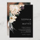 Wir entwarfen diese weiße Blume | Schwarzes traditionelles Foto Hochzeit Einladung, um Ihre rustikale dunkle tropische Hochzeit zu vervollständigen. Die böhmische Aquarellanlage mit ihren modernen böhmischen Blume, wie Protea, Dahlia und getrockneten Lotus, ist ein Set für das modisch-minimalistische Schwarz-Grün. Ändern Sie den Text und fügen Sie ein Foto, um es zu Ihrem eigenen machen. Schauen Sie sich auch die Erholung der Sammlung an, um sich zu koordinieren, die Ihre Hochzeit zusammenbringen wird! https://www.zazzle.com/collections/white_floral_collection-119896729923706651