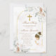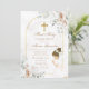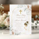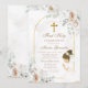 EDITABLE Weiße florale goldene Kreuz Mädchen Erste heilige Kommunion Einladung, Elegantes kleines Mädchen betet Primera Comunión, moderne ivory heilige Taufeinladung