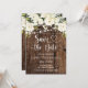 Verkünden Sie Ihren besonderen Tag mit zeitloser Eleganz mit dieser wunderschönen rustikalen weißen floralen "Save the Date"-Hochzeitskarte! Diese Karte zeigt üppige weiße Rosen und einen Blumenstrauß, frisches grünes Laub, zarte Lichterketten und eine schöne Herzschrift auf einem reichen, warmen dunklen Holzhintergrund. Ein klassisches und raffiniertes Design, perfekt für Frühlings- und Sommergartenhochzeiten, rustikale Scheunenzeremonien und jede romantische Feier, bei der saubere weiße Blumen die Show stehlen!