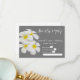 Weiche und zarte Blumenmuster mit weißer hawaiianischer Frangipani oder Plumeria Blume auf einem mittelgrauen Hintergrund. Eleganter Schrifttyp, der die eleganten weißen und gelben Blumen betont. Ein Set für die Hochzeit am Strand, die Hochzeit von Hawaii, die Hochzeit in Urlaubsort der tropischen Insel und vieles mehr.