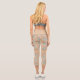 Weiße, gravierte Blume auf Bräune Capri Leggings