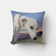 Die Bilder sind ein weißer Greyhound, der am Strand nah ist, in einer Ölfarbe.