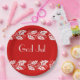 Papiertafel mit einigen festlichen Hündchen in rot und weiß . Es kommt mit dem Text "God Jul" - es bedeutet auch Merry Xmas auf Schwedisch und in anderen skandinavischen Sprachen . Sie können es jetzt mit Ihrem eigenen Text anpassen.
