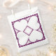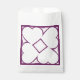 Dieser Begehrensack besteht aus vier weißen Herzen, die einen zentralen weißen Diamanten umgeben, der in hellrosa auf Pflaumenhintergrund umrissen ist.