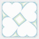Dieser Aufkleber weist ein Muster von vier weißen Herzen auf, die einen zentralen Diamanten umgeben und auf einem hellblauen Hintergrund grau umrissen sind.