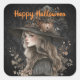 Weiße Hexe auf schwarzem Damast Quadratischer Aufkleber