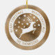 Desteis weißes Hirsche-Silhouette-Design zusammen mit einigen Sternen auf einem Imitat goldgelben Folie Textur Hintergrund (NICHT REAL FOIL). Um das Hirsch geht es in einen weißen Kreis, der zweimal lautet: "Frohe Weihnachten", und am unteren Ende befindet sich ein personalisierbarer Textbereich für einen Familiennamen oder anderen benutzerdefinierten Text. BITTE BEACHTEN SIE: Die Folie ist nicht real. Es ist ein digital erstelltes Bild, das auf dem Produkt gedruckt wird.
