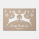 Weiße Hirsche stehen einander auf Beige & Text geg Fußmatte