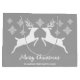 Desteis originelles Design der Silhouette von zwei Hirschen, die sich gegenüberstehen, zusammen mit einigen dekorativen Schneeflocken. Die Hintergrundfarbe ist grau. Es gibt auch zwei personalisierbare Textbereiche.