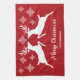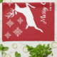 Weiße Hirschformen auf Rot mit Schneeflocken und T Geschirrtuch